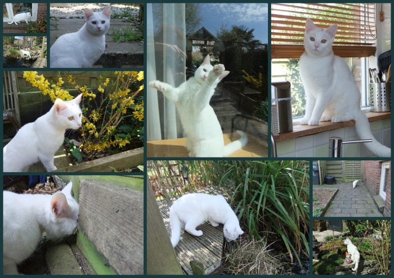 Miko voor het eerst naar buiten, ze vond het superspannend.