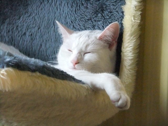 Miko heeft een huisje van de buren gekregen. Dikke pret.