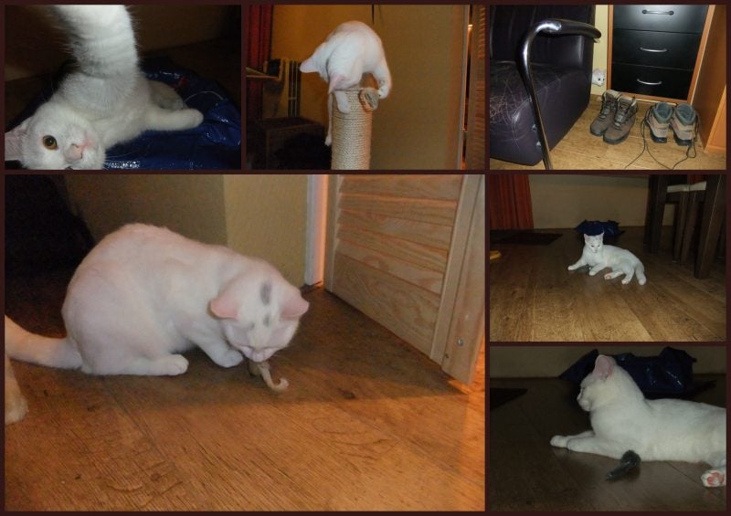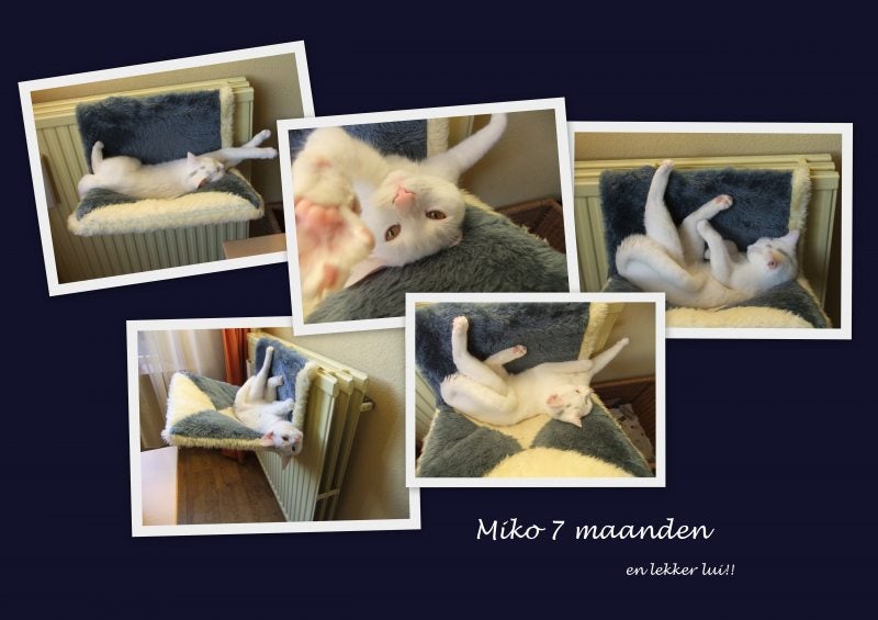 Miko wordt voorbereidt voor de grote wereld, de tuin. Ze heeft nu een riempje om zodat ze er aan kan wennen. Over een poosje komt daar een magneetje aan zodat ze zelf kan en mag bepalen wanneer ze binnen of buiten wilt zijn. Tuigje vind ze niks maar aan het riempje gaat ze nu wel redelijk aan wennen.