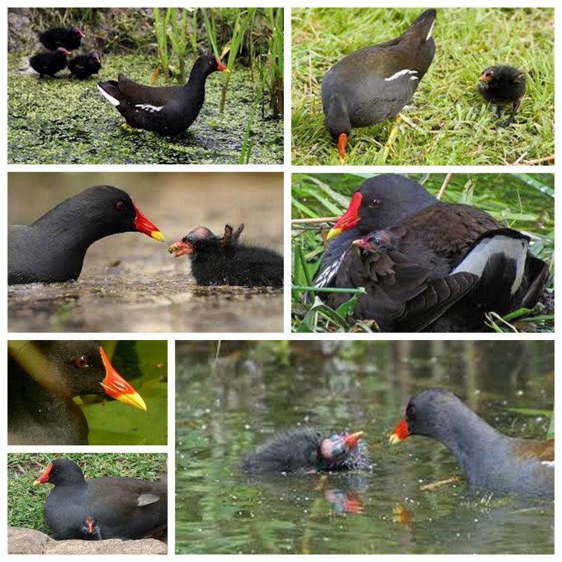 Vanmorgen was ik in de tuin bij het water mijn was aan de droogmolen aan het ophangen. Daar kwam de familie waterkip. Hadden ze vorige week nog 7 kuikens, het was nu geslonken naar 2.