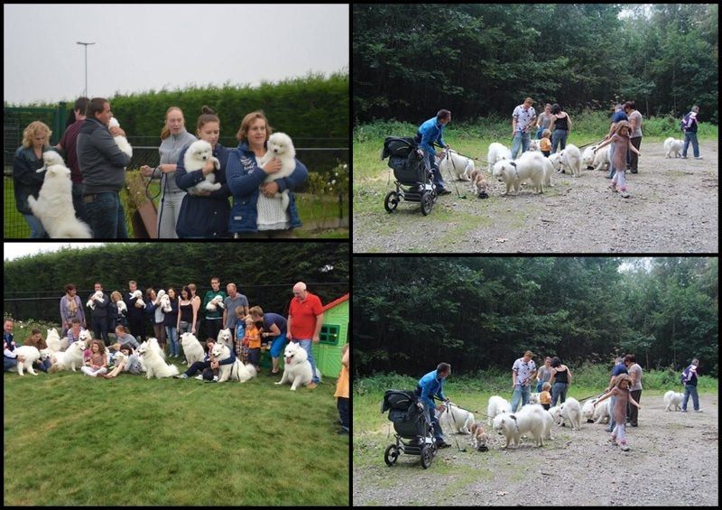 Afgelopen zaterdag zijn we naar Rillaar geweest voor uiteraard de puppies maar ook voor een bbq en reünie van alle vorige nesten. Dat was heel leuk. Leuk om zoveel sammies bij elkaar te zien. Leuk om met de eigenaren te praten en leuk om vol trots te kunnen zeggen dat wij over twee weken ook zo'n beertje in huis hebben.